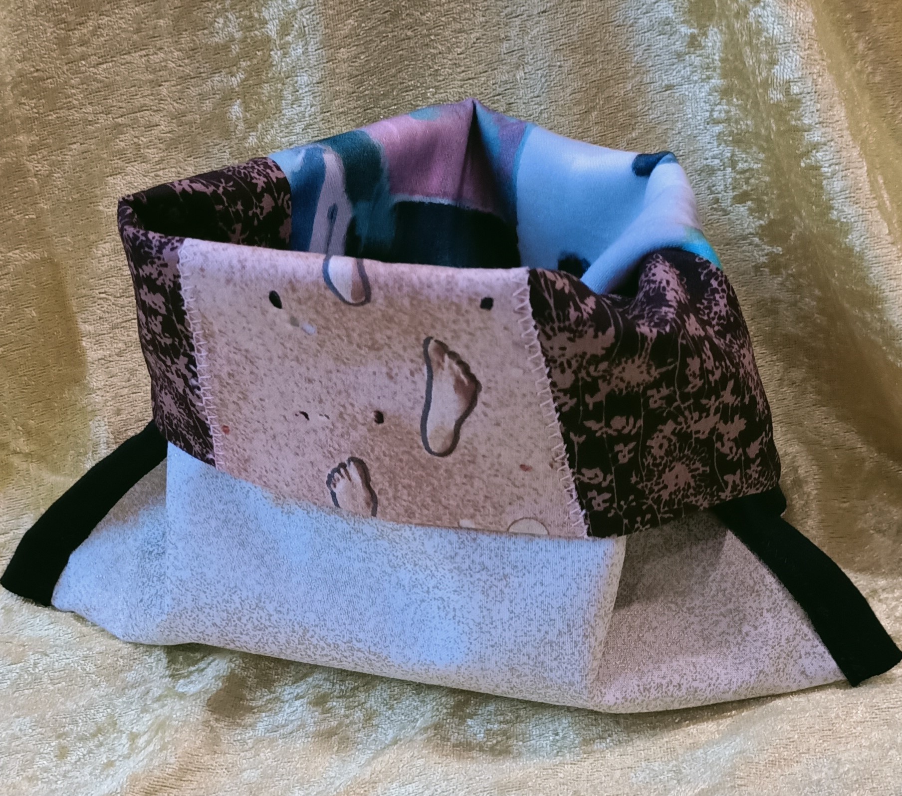 Ein Bibel-Krempler ist ca. 25x23 cm groß. Er ist mit verschiedenen Stoffen so zusammengenäht, dass eine Tasche entsteht. Diese wird dann wie ein Handschuh auf die Hand gesetzt und beim Erzä